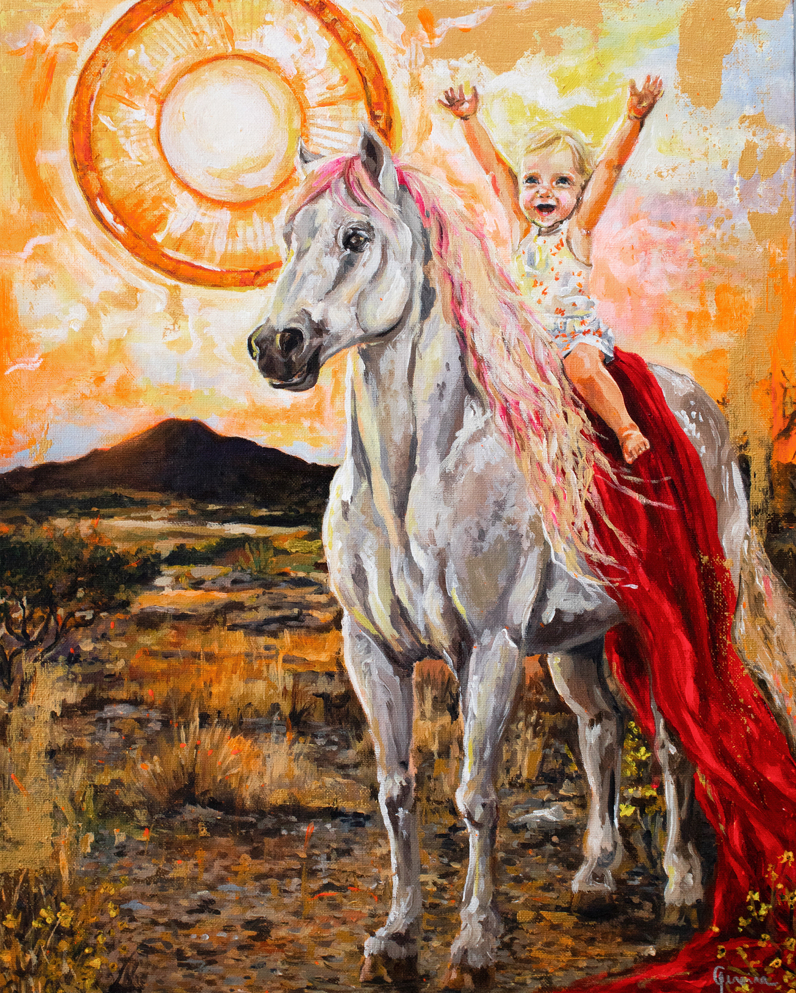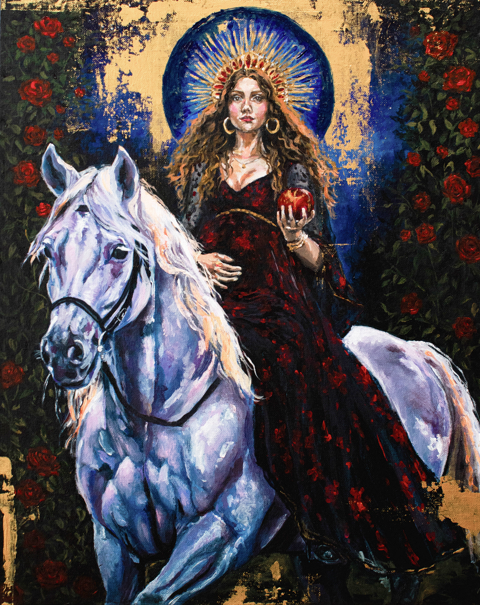 Cosmologia Arcana reúne pinturas contemporâneas que investigam a relação entre corpo, arquétipo e dimensões do cosmos simbólico. Figuras femininas emergem como manifestações simbólicas de estados internos, energia e transformação. Não se tratam de personagens, mas de presenças que atravessam o visível, articulando memória e imaginação. A pintura se configura como campo simbólico, onde formas transitam entre o humano e o arquetípico. A série se desenvolve como uma investigação contínua sobre arquétipos, percepção e transformação.