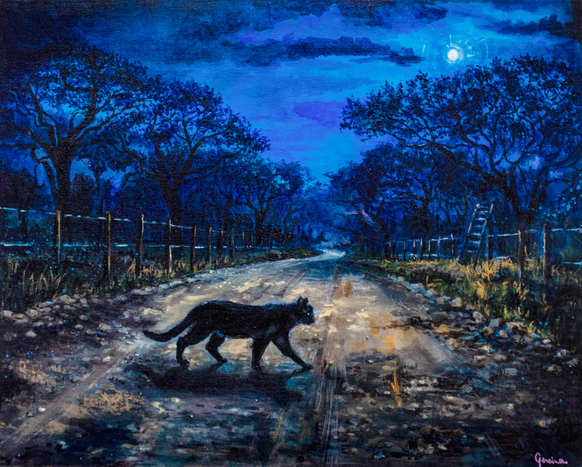 In the night, crossing unfolds between presence and disappearance.